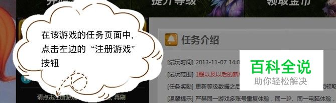 第二步:在该游戏的任务页点击左边的“注册游戏”按钮