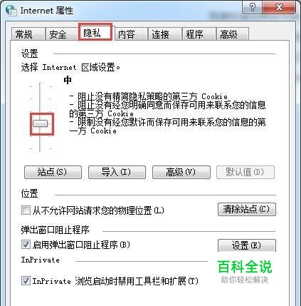 打开ie浏览器,点击设置按钮,选择“工具-Internet选项”,然后点击“隐私”,将级别调整为“中”点击确定,如图所示: