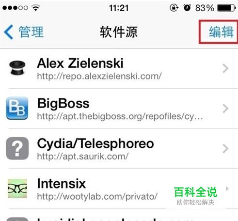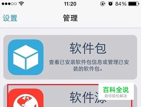 1.首先让我们打开Cydia,点击管理后,选择软件源并进入;