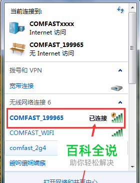 1.蒋中继器插入电源插座,接入家里的宽带(或连接猫)的网线接到中继器上。 2.点击笔记本电脑的网络图标连接comfast-xxx这个信号。