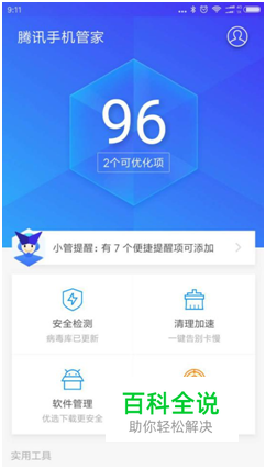 如果觉得前两种方法比较麻烦的话,可以下载第三方清理软件,不仅操作简单,而且清理的还很干净彻底,以腾讯手机管家为例。 打开该软件之后会自动对你的手机有一个评分,点击分数下面的“一键优化”,可以释放系统内存、关闭后台进程、清理系统缓存垃圾等,同时还包括“病毒查杀”等安全加固,另外还有针对微信和手机QQ的垃圾扫描。没事的时候也可以发射一下桌面上的小火箭,释放系统内存,给手机加速!