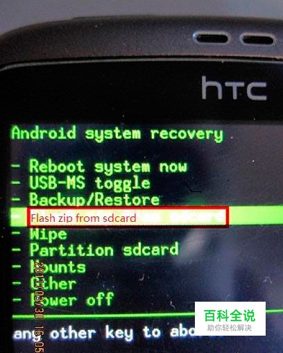 wipe 完成后面,按返回键进入【Flash zip from sdcard】刷ROM