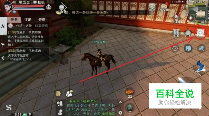 首先,进入到楚留香手游中后,点击右上角小地图下方的类似“花朵”的选项。