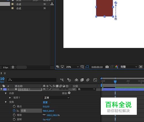 创建合成完成之后,我们先随意来创建一个简单的动画,调整一不同时间下的位置状态即可进行制作。