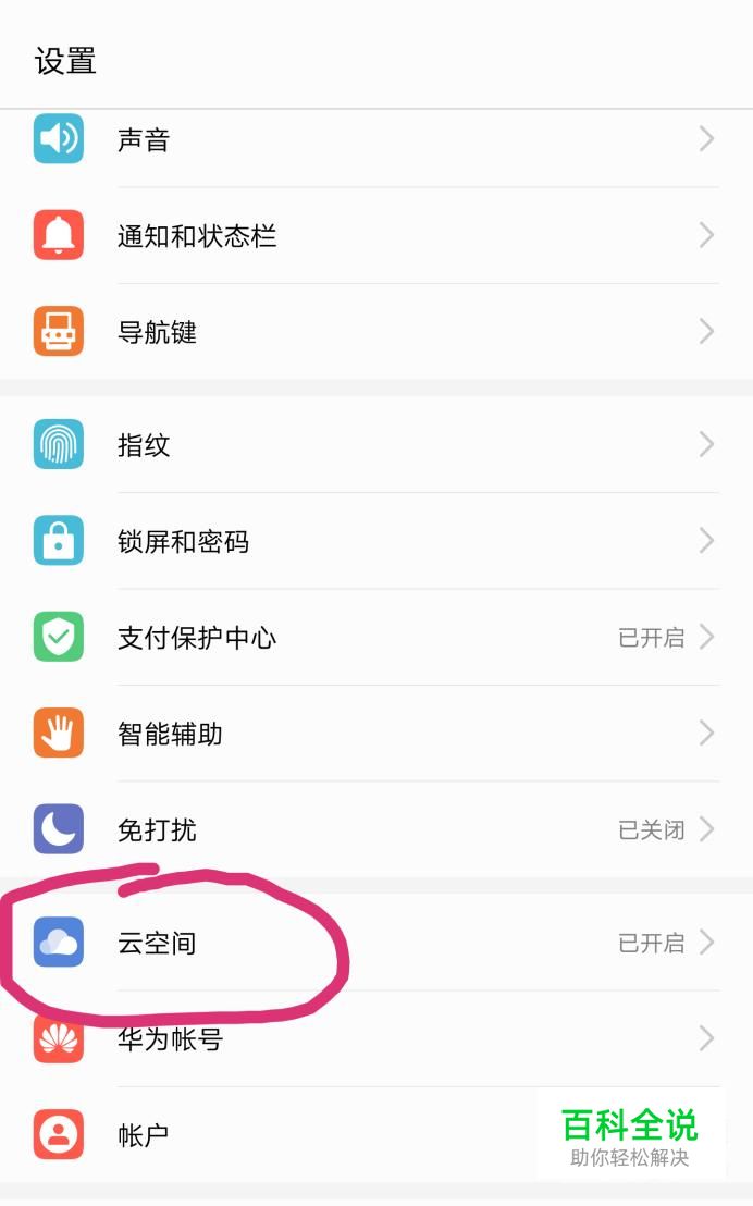 打开华为手机,进入“设置”程序,找到“云空间”,点击进入。
