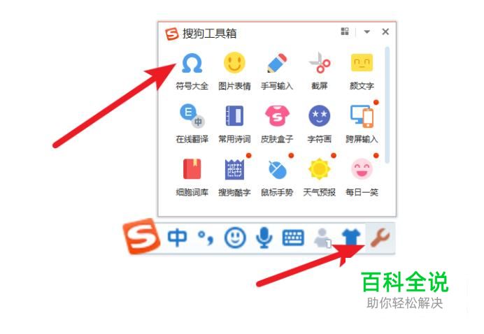 打开搜狗输入法上的板手图标,然后点击‘符号大全’。
