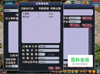 自动收购 了让玩家之间的交易更加方便快捷,商会还设有商品收购功能(仅限于唤兽店)。店主可以自己设置收购的召唤兽种类、数量和价格,此后无论店主是否在线,其他玩家都可以将符合要求的召唤兽卖给店主。 店主最多可同时填写8条收购信息,收购单价需在1000两至10万两以内。 店主所填写的收购数量将占用商店中的空余位置,收购召唤兽数量大于商店空位时无法收购。 当有玩家按照店主的收购要求,将召唤兽卖给店里时,商店将按照店主设置的价格,自动在日常运营资金中扣除相应的金钱,用来支付给卖家。