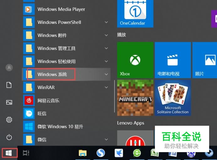 首先,我们点击电脑左下角的微软按钮,弹出的界面,我们进行下滑,找到Windows系统,然后我们点击打开它了;