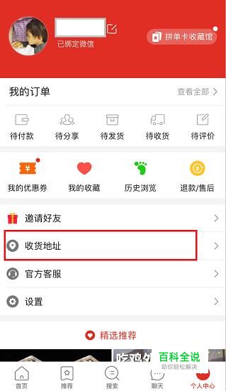 首先,在手机上打开拼多多购物APP,在个人中心里面,点击“收获地址”选项。