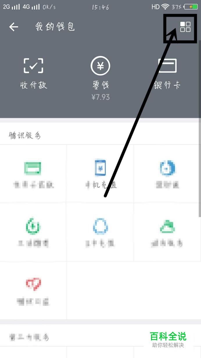 在微信里面打开钱包,在钱包里面点击右上角的符号进入支付中心,如图所示。