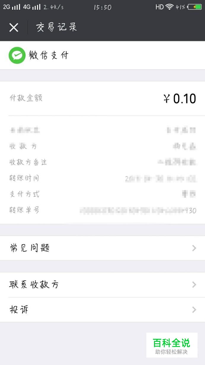 点击“交易记录”,在“交易记录”页面找到相应的交易记录并点击,进入交易详情,如图所示。