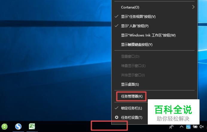 我们右击电脑下方的任务栏,弹出的界面,我们点击任务管理器;
