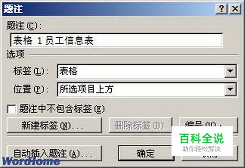 第4步,返回“题注”对话框,如果选中“题注中不包含标签”复选框,则表格题注中将不显示“表”字样,而只显式编号和用户输入的表格名称。单击“位置”下拉三角按钮,在位置列表中可以选择“所选项目上方”或“所选项目下方”。设置完毕单击“确定”按钮,如图2009021408所示。图2009021408 “题注”对话框 插入的表格题注默认位于表格左上方,用户可以设置对齐方式(如居中对齐),如图2009021409所示。图2009021409 成功插入表格题注