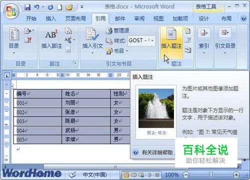 在Word2007文档中,用户可以通过插入表格题注为表格编号,从而更清晰规范地管理和查找表格。为表格插入题注在Word文档中含有大量表格的情况下尤其适用,操作步骤如下所述: