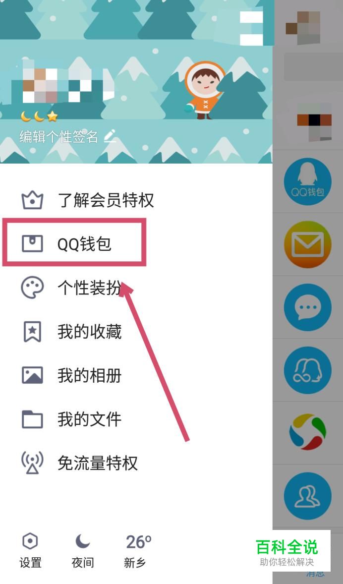 然后在左边弹出的选项卡中找到【QQ钱包】,点击进入。