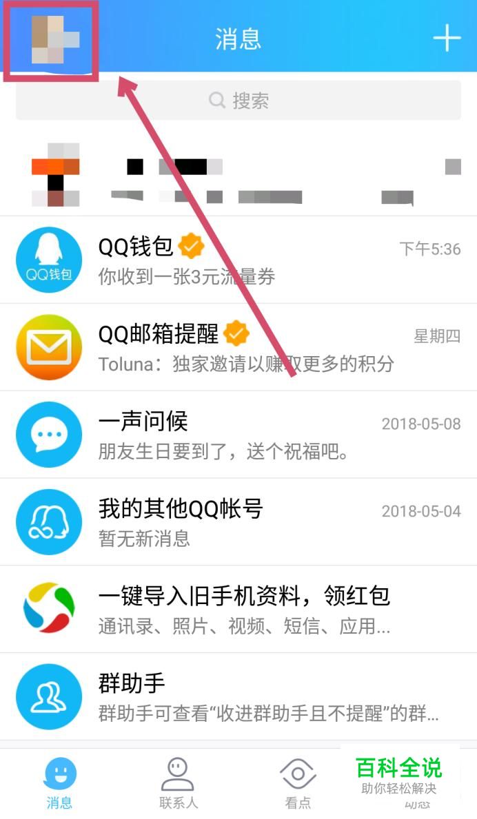 打开QQ,在界面左上角找到你自己的头像,点击进入。