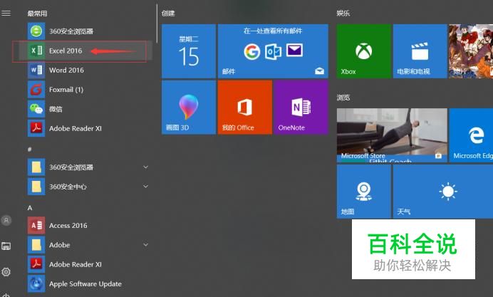 在程序列表找到excel单独打开