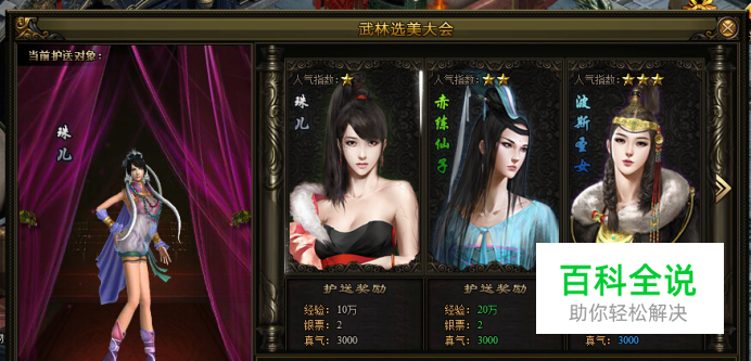 在9377《笑傲群侠》里,武林选美玩法的推出,给大家带来一个焕然一新的美艳江湖和热血江湖。在刀光剑影的江湖世界里,快来与你的神仙姐姐小龙女来一场浪漫的邂逅吧。 行走江湖,美人如玉。《笑傲群侠》武林选美活动,让你每天都能与绝色美女们浪漫邂逅,还能充当护花使者,将心中的女神一路保驾护航,送到指定的安全地方。每位玩家每天可完成2次武林选美任务,另外可花元宝额外购买2次。护送次数将在每天凌晨5点重置。 作为人气指数最高的日常活动,9377《笑傲群侠》武林选美里所护送的对象不同,所获得的奖励也不同。如护送白色美女珠儿可获得10万经验,2银票和3000真气;护送绿色美女赤练仙子可获得20万经验,2银票和3000真气。 除此以外,还有蓝色美女波斯圣女,对应护送奖励为30万经验、4银票、3000真气;紫色美女神仙姐姐,可获得40万经验、6银票和3000真气;橙色美女小龙女,可获得50万经验、8银票和3000真气奖励。当玩家接受任务时,所出现的美女品质为随机状态。 如果玩家对当前的美女品质不满意,每天有3次免费刷新的机会。当次数用完后,则需要消耗“胭脂粉”来进行刷新。护送的过程中,还可以花元宝来购买保险,护送成功后奖获得额外50%的任务奖励,而护送失败则可返还全额奖励。 在9377《笑傲群侠》武林选美活动里,除了购买保险外,玩家在遇到劫镖时,还可以向帮会发起援助,请求帮会兄弟们的帮忙。江湖如此多娇,美人如鱼剑如虹,且携手绝色美人一路荣华,共筑天娇。