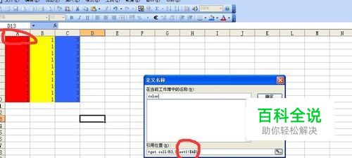 将引用位置命名为color,然后添加到”当前工作簿中的名称列表“内