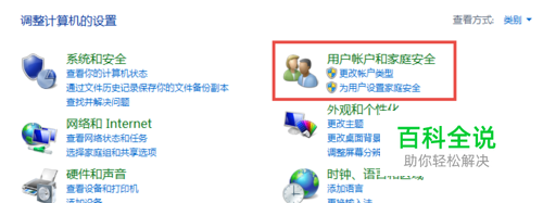 打开控制面板,选择“ 用户账户和家庭安全”。