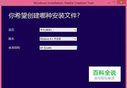 第二步:选择语音、系统版本、体系结构。 请注意:出厂预装的一般为Windows 8.1 中文版,而平板设备多用的为Windows 8.1 Bing版。如果你不清楚你是什么版本,请右键点击“这台电脑”–属性–即可看到版本、体系结构。