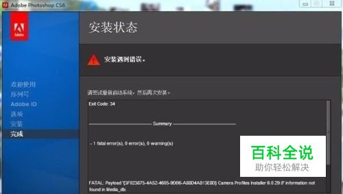 Photoshop CS6安装错误(Exit Code: 34)解决办法