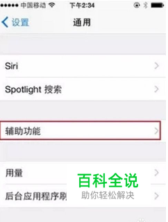 1.打开“设置——通用“,在通用菜单上点击选择”辅助功能“选项。