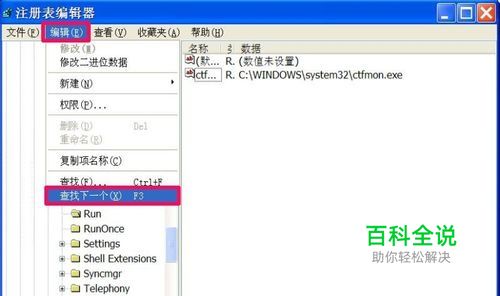 8,删除了这一项以后,还要查找,再按”编辑“下的”查找下一个“,或者直接按F3键,查找到以后,删除,找到的全部删除,直到查找全部结束。