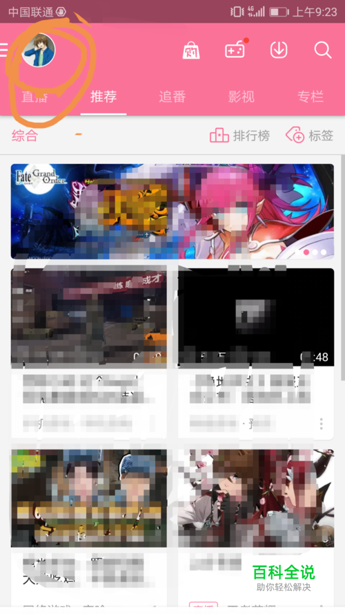 打开bilibili(B站)手机软件,进入其初始界面,点击左上角的图像,如图所示