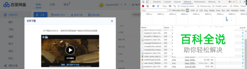 点击百度网盘资源后面的下载按钮,(大文件需要继续点击高速下载) 并且在调试页面中可以抓取的请求,然后点击download?sign那个链接(Type为xhr)