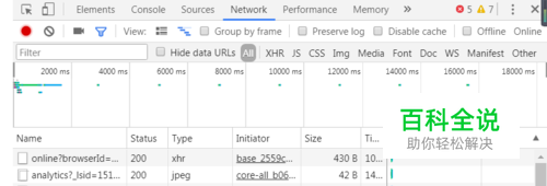 按键盘F12,在弹出调试页面,然后选择Network-->All,点击Clear