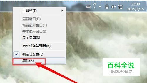 第一种方法 有的人遇见屏幕上的任务栏在屏幕的上方不知道怎么办,下面我就具体的介绍一下。在屏幕的任务栏这一块空白地方右击鼠标,右击鼠标后弹出一个对话框。在对话框里选择“属性”。