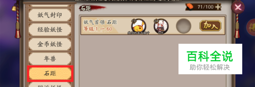 进入游戏之后,尽量别带太多狗粮,因为石距的血量大,队伍中没有伤害的话会相当耗费时间,点击式神前面的黄色和蓝色区域就可以选择战斗的式神和观战的式神