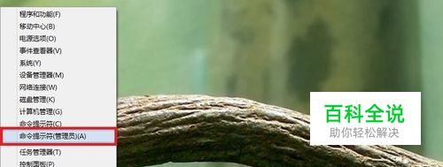 这时,在开始菜单图标上右键或用其他方法打开“命令提示符(管理员)”;