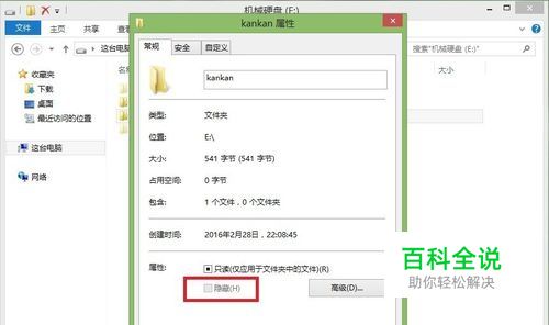 这时,再次查看该文件夹的属性,“隐藏”属性就可以更改了。
