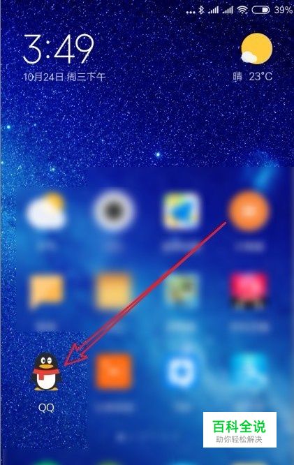 首先我们在手机上左右滑动屏幕,找到安装好的QQ的图标,点击后打开并登录QQ