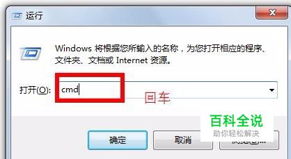 在其中输入“cmd”。然后按“enter”回车键,或者点下面的确定键