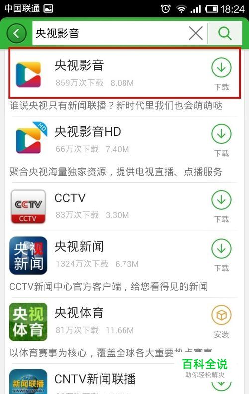 在搜索结果,我们点击央视影音
