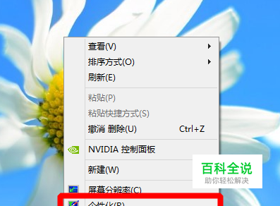 我们在电脑桌面右键找到个性化的选项字样的设置