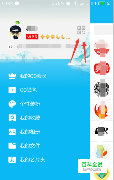 先打开我们的手机qq,侧滑一下(如图) 点击右上方的二维码图标。