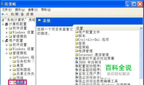 3,然后再打开管理模板的子项,从中找到“系统”这一项,选定。