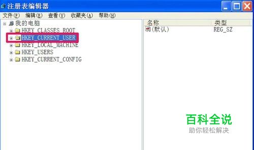 2,进入注册表编辑器窗口后,如果安装时的提示窗口中显示是什么路径,就在注册表选择这个路径,以这个提问网友的安装程序为例,其根键是"HKEY_CURRENT_USER"这一项。