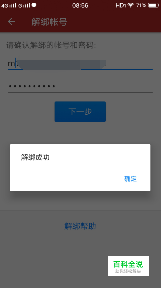 准确输入后,点击下一步,解绑成功。 若是下次想要再次启用,只需要将账号密码重新输入一遍即可,就跟登录一样的操作。
