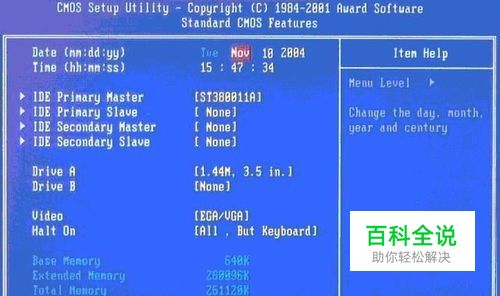 进入bios,在CMOS Setup菜单项中选择“Standard CMOS Features(标准CMOS功能设置)”
