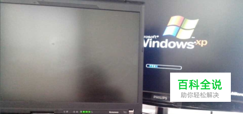 VGA连接线插好以后将笔记本电脑重新启动,这个时候台式的显示器就会显示电脑的进入的界面。