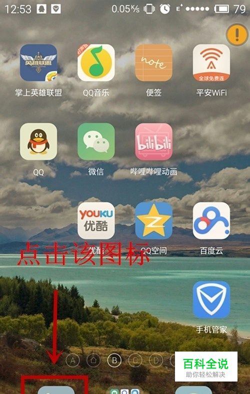 首先,点击左下角的标识,如图所示。