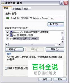 右击直接连接到局域网的连接,在快捷菜单中选择“属性”,显示如图所示“本地连 接属性”对话框。