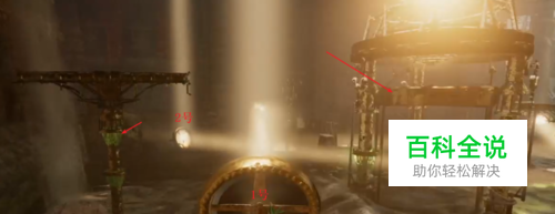 来到2号镜子处,操作它,把阳光反射到通往1号镜子的柱子上(箭头所指的柱子)。
