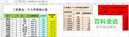 用VLOOKUP和IF公式计算个人所得税时的具体方法