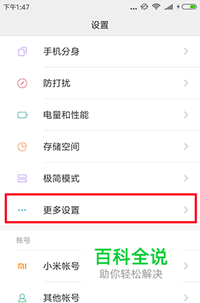 进入设置后,找到设置里面的【更多设置】选项。